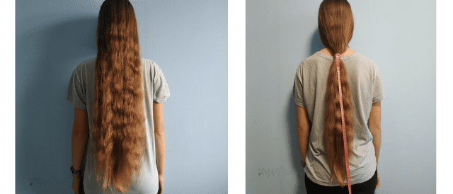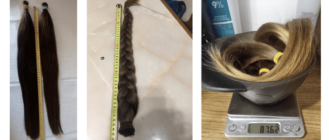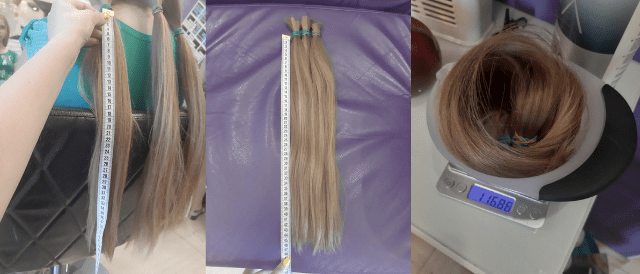 Тщательно расчешите волосы и завяжите хвост на уровне предполагаемого среза. Поместите начало рулетки на резинку, чтобы указать длину. Сделайте фото при хорошем освещении и отправьте на оценку нашему специалисту.
