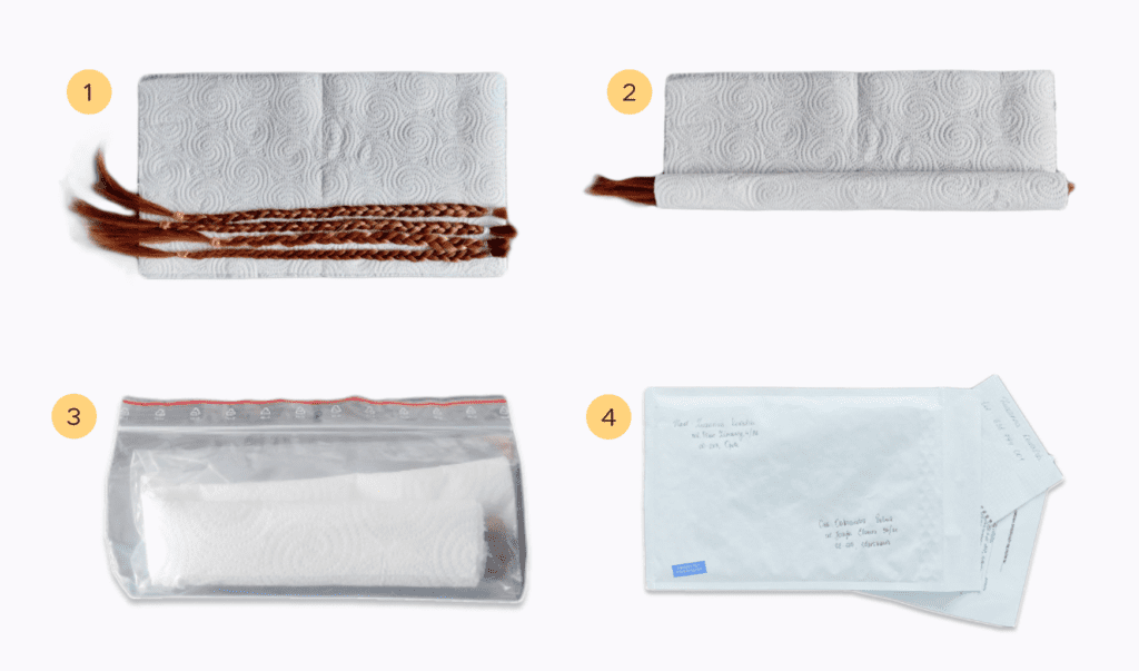 Ви надсилаєте нам фото вашого вже зрізаного хвостика (кіски) при хорошому освітленні з сантиметром, рулеткою або лінійкою на столі та окремо фото хвостика на терезах.